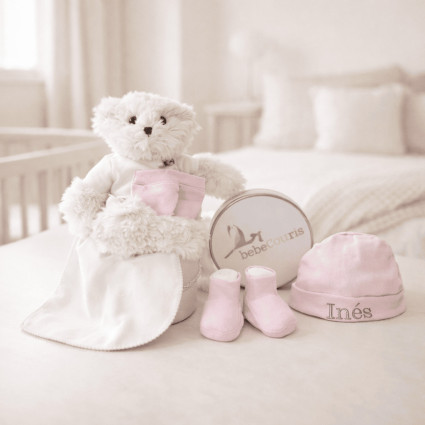 Set: zapatitos, manoplas y gorro con peluche en caja vintage C450 $1,091.00 (6 reviews) Te presentamos al que será el primer amigo del bebé: un tierno osito de peluche. No podrá hablar, pero sin duda sacará muchas sonrisas al recién nacido. Suave al tacto, el bebé no querrá separarse de su fiel compañero. Incluye un babero para bebé, cómodo, práctico y encantador, perfecto para completar una canastilla y sorprender con un regalo ideal para... COMPRAR