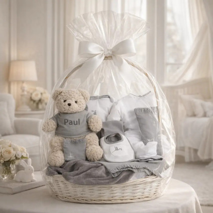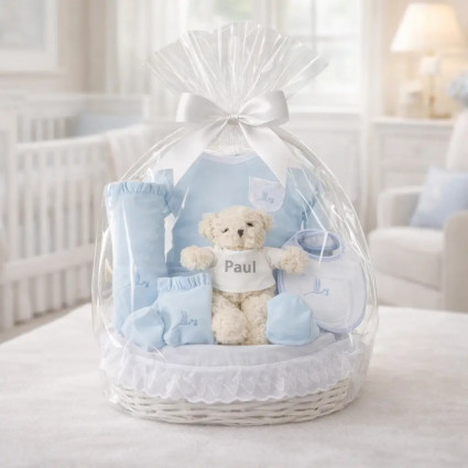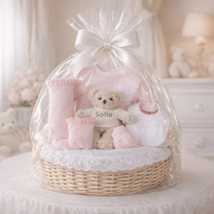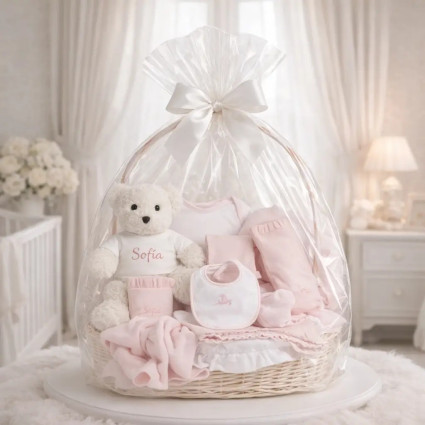 Puedes elegir entre una cesta tejida a mano o una caja estilo vintage. Nuestro equipo la preparará con mucho cariño en nuestro taller y la enviará personalizada en menos de 24 horas al domicilio, llevando tus mejores deseos a los nuevos papás. Cada canastilla se entrega con una presentación impecable, una tarjeta personalizada con el nombre del bebé y otra con la dedicatoria que elijas para felicitar a la familia en este momento especial.